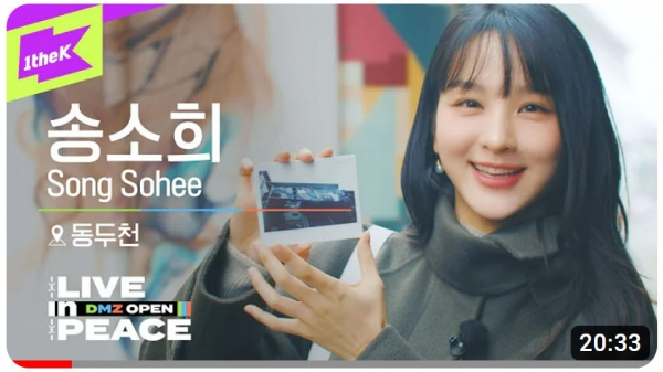 관련 영상은 YouTube ‘1theK Original’ 채널에서 ‘[Live in PEACE : DMZ OPEN Ep.5] 송소희, 힙한 동두천의 다양한 매력에 빠지다?’로 업로드된 상태며 동두천시 공식 SNS 채널 및 홈페이지, 공공청사와 시정홍보TV 등으로도 방영될 예정이다.