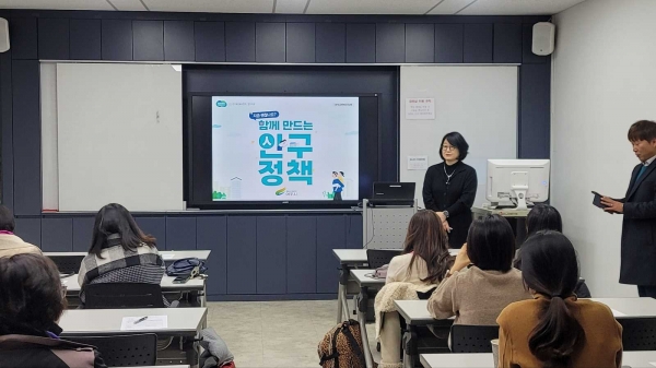 “함께 만드는 인구정책”을 주제로 진행된 강의는 인구변화의 원인과 인구 문제 극복을 위한 정부 및 해외, 타 지자체의 정책을 살펴보고 향후 어떤 계획과 목표를 세워야 할지에 대한 논의로 진행됐다.