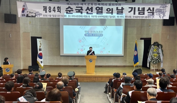 [금요저널] 여주시 독립운동가기념사업회는 11월 17일 여주도서관 여강홀에서 이충우 여주시장 및 정병관 여주시의회 의장, 시의원, 애국지사 유족, 관내 보훈 및 안보단체장을 비롯한 150여명이 참석한 가운데 제84회 순국선열의 날 기념식을 개최했다.