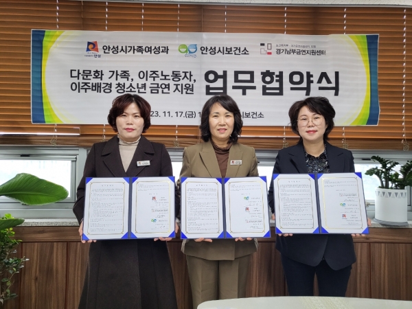 [금요저널] 안성시에 거주하고 있는 다문화가족의 건강증진 및 금연환경 조성을 위해 경기남부금연지원센터, 가족여성과, 건강증진과가 지난 17일 업무협약을 체결했다.