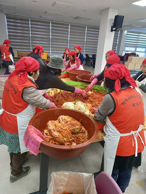 이번 행사는 북내면지역사회보장협의체가 매년 추진해오는 사업으로 회원 15여명이 참여해 재료 손질, 버무리기 등을 시작해 김장김치 300포기를 담가 직접 도움이 필요한 50가구 이웃들에게 전달했다.