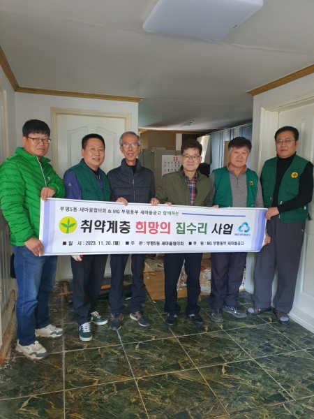이번 희망의 집수리에 소요되는 비용은 부평동부 새마을금고가 후원한 100만원과 부평5동 새마을협의회 자체 기금으로 마련됐다.