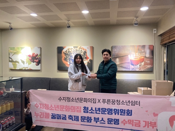 청소년운영위원회 누리봄은 도움이 필요한 지역 청소년들에게 조금이라도 도움이 되었으면 하는 바람으로 문화부스 운영수익금 전액을 용인푸른꿈청소년쉼터에 기부하기로 했다.