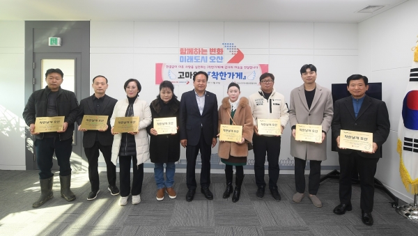 이권재 오산시장은 “오산시의 착한가게로서 장기간 지속적으로 후원해 주심에 진심으로 감사드리며 이러한 따뜻한 마음과 손길이 오산시 전역으로 확산되어 복지 사각지대 없는 행복한 오산을 만들기 위해 적극 노력할 것”이라고 말했다.