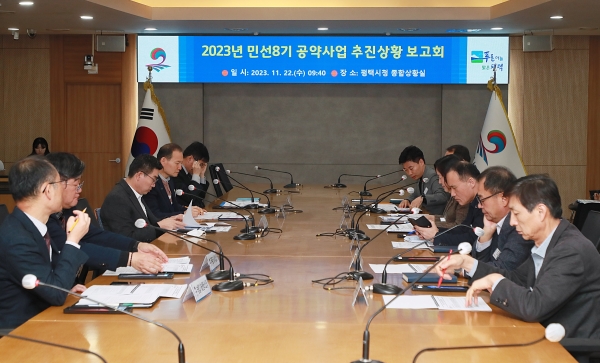 [금요저널] 평택시는 22일 시청 종합상황실에서 민선8기 공약사업 추진상황 보고회에서 9대 분야 222개 공약사업을 점검했다고 밝혔다.