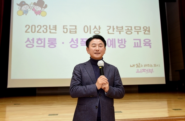 [금요저널] 의정부시는 11월 22일 시청 대강당에서 김동근 시장을 비롯한 5급 이상 간부공무원을 대상으로 상호 배려하는 건강한 공직문화를 조성하기 위한 ‘성희롱·성폭력 예방교육’을 실시했다.
