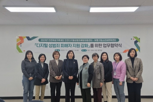 [금요저널] 부평구 청소년성문화센터는 지난 21일 인천여성가족재단 인천디지털성범죄예방대응센터와 지역사회 내 아동·청소년 대상 디지털 성범죄 피해자 지원을 위한 상호 업무협약을 체결했다.