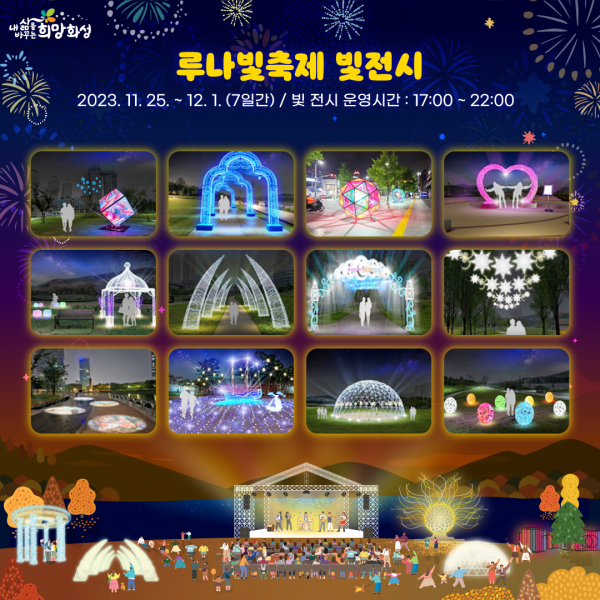 정명근 화성시장은 “화성 루나 빛 축제를 통해 화성시민들이 만들어 낸 수많은 색들이 화성시를 비추는 하나의 달빛으로 눈부시게 빛나기를 바란다”고 밝혔다.