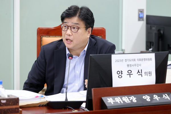 [금요저널] 경기도의회 여성가족평생교육위원회 겸 의회운영위원회 양우식 부위원장은 23일 경기도의회 의회사무처를 대상으로 한 2023년 행정사무감사에서 경기도의회 운영 전반에 대한 문제에 대해 지적했다.