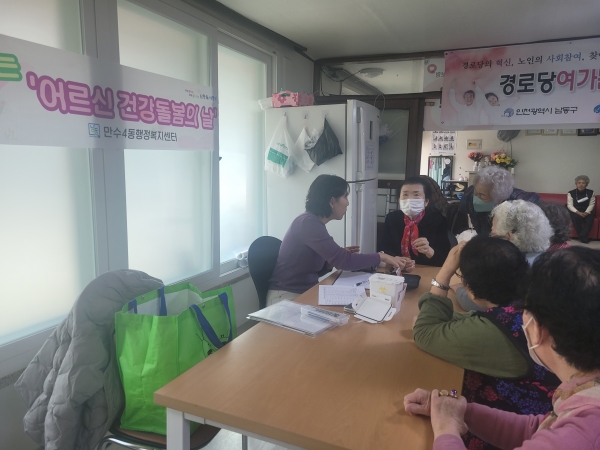 [금요저널] 인천 남동구 만수4동 행정복지센터는 최근 만수주공 6단지 경로당을 방문해 ‘찾아가는 어르신 건강 돌봄의 날’ 사업을 진행했다고 24일 밝혔다.