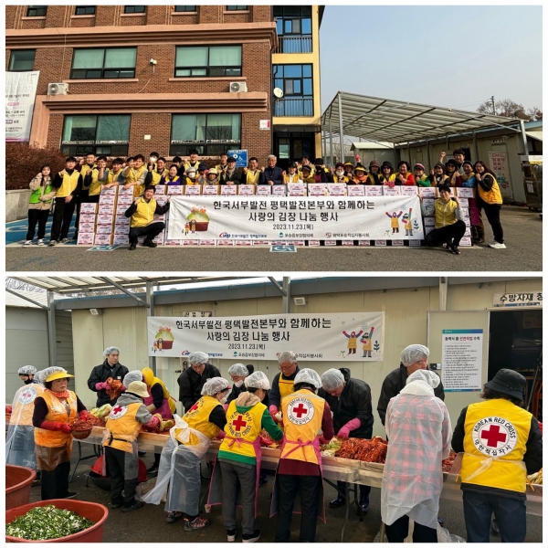 [금요저널] 평택시 포승읍 적십자봉사회는 지난 23일 포승읍 행정복지센터에서 지역 내 취약계층을 위한 ‘사랑의 김장 나눔 행사’를 진행했다.