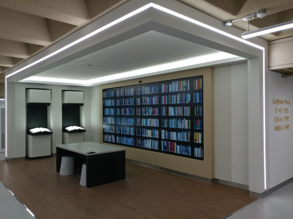 ‘실감서재’ 전시 공간은 첨단 터치스크린 기술이 적용된 대형 미디어 월과 연동형 멀티 터치 테이블로 구성된 차세대 정보 검색 시스템인 ‘검색의 미래’와 우리나라의 국보 고서를 생동감 있게 디지털로 재현한 ‘디지털북’ 공간으로 구성했다.