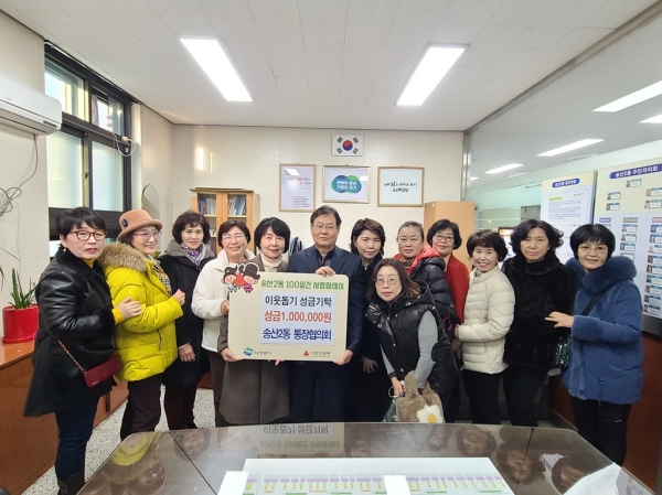 [금요저널] 의정부시 송산2동주민센터는 11월 24일 송산2동 통장협의회가 사랑릴레이 배턴 잇기 운동을 응원하며 성금 100만원을 기탁했다고 밝혔다.