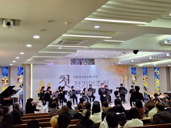 [금요저널] 부평구 부평2동 마을 오케스트라가 지난 25일 부평감리교회에서 열린 ‘제1회 정기연주회’를 성공적으로 마쳤다.