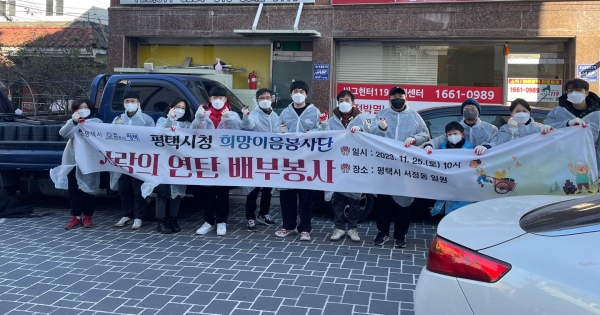 [금요저널] 평택시 공무원 자원봉사동아리 ‘희망이음봉사단’은 지난 25일 에너지 취약계층이 추운 겨울을 따뜻하게 보낼 수 있도록 2가정에 650장의 연탄을 지원했다.