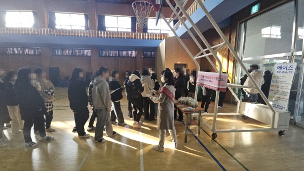 [금요저널] 동두천시 보건소는 지난 24일 제36회 세계 에이즈의 날을 앞두고 청소년 에이즈 예방을 위해 동두천여자중학교에서 3학년 재학생과 교직원을 대상으로 캠페인을 실시했다.