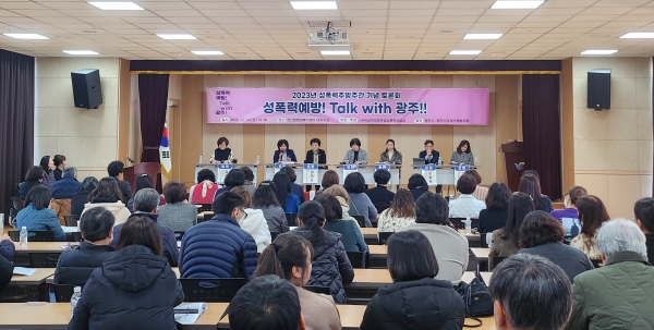 [금요저널] 사단법인씨알여성회 부설 성폭력상담소는 24일 경안동 행정복지센터 대강당에서 ‘성폭력 예방 Talk with 광주’기념토론회를 개최했다.