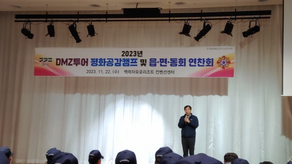 경기도 재향군인회에서 실시하는 DMZ 투어 평화 공감 캠프 행사는 지방 보조금 지원사업으로 11.22~23간 경기도민과 재향군인회 회원을 대상으로 DMZ을 접한 접경지역과 군사보호구역을 둘러보고 나라사랑의 진정한 의미를 새기기 위해 평화공감 안보교육 위주로 실시하는 행사이다.