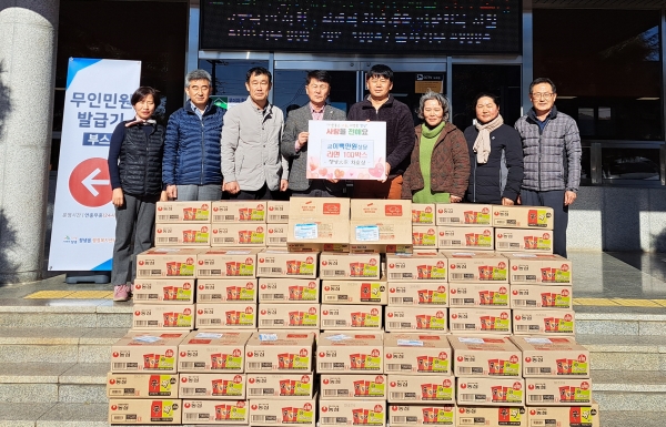 성봉준 읍장은 “주변의 어려운 이웃을 생각하며 해마다 따뜻한 나눔을 실천하고 계시는 차호상 대표님께 감사드린다”며 “맡겨주신 라면은 경남사회복지공동모금회를 통해 창녕읍에 거주하는 저소득 취약계층에 잘 전달하도록 하겠다”고 밝혔다.