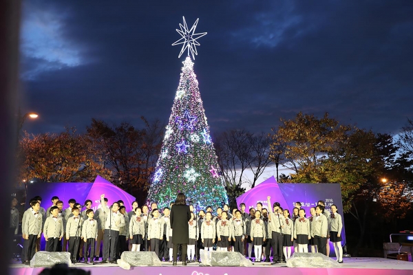 점등식은 행사 첫날 오후 5시 30분 복정동 분수광장에서 신상진 성남시장과 시민 400여명이 참여한 가운데 열린다.