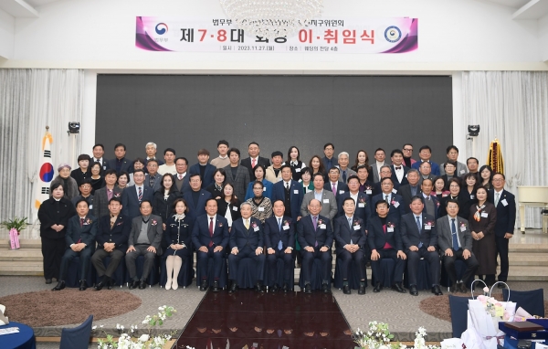 [금요저널] 법무부 청소년 범죄예방위원 오산지구 위원회가 지난 27일 오산 웨딩의 전당에서 제7대 이광수 회장과 제8대 황선명 회장 이취임식을 개최했다.