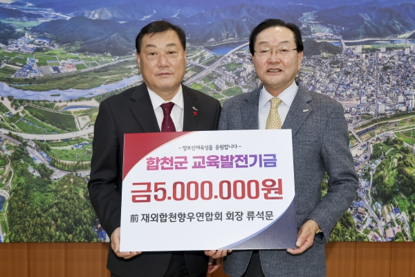 류석문 전 회장은 “합천군의 교육발전과 향토인재육성에 조금이나마 보탬이 되고자 기탁하게 됐다”며 “합천군 관내 학생들이 더 나은 환경에서 학업에 열중할 수 있기를 바란다”고 소감을 전했다.