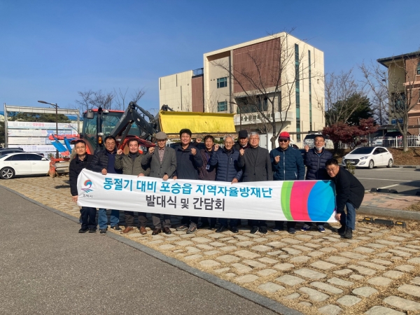 이날 발대식은 동절기 방재단의 역할과 임무 숙지 및 제설장비 사전 점검을 통해 강설 시 각종 안전사고에 신속하게 대응할 수 있도록 민관 협력체계를 구축하기 위해 실시했으며 발대식 후 트랙터 부착형 제설기 점검 및 관내 도로 배수 시설물 주변 낙엽 제거 등 환경정화 활동의 시간을 가졌다.