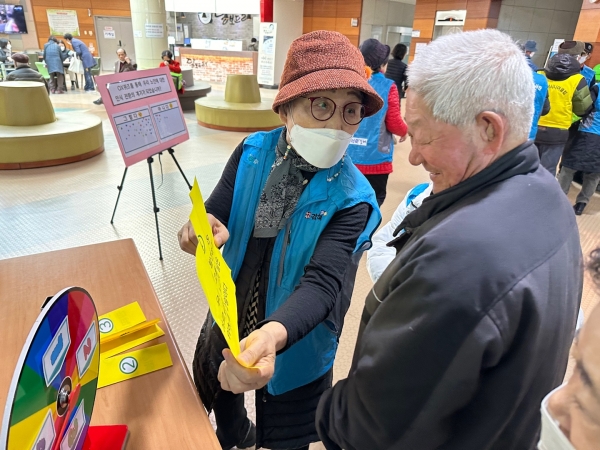 이날 캠페인에 참여한 김 어르신은 “노인인식과 관련한 OX퀴즈에 참여함으로써 노인에 대한 고정화 된 부정적 인식을 개선할 수 있는 뜻깊은 시간이 됐다”며 “후배시민들을 위한 귀감이 되는 삶을 살기 위해 더욱 노력 하겠다”고 소감을 밝혔다.