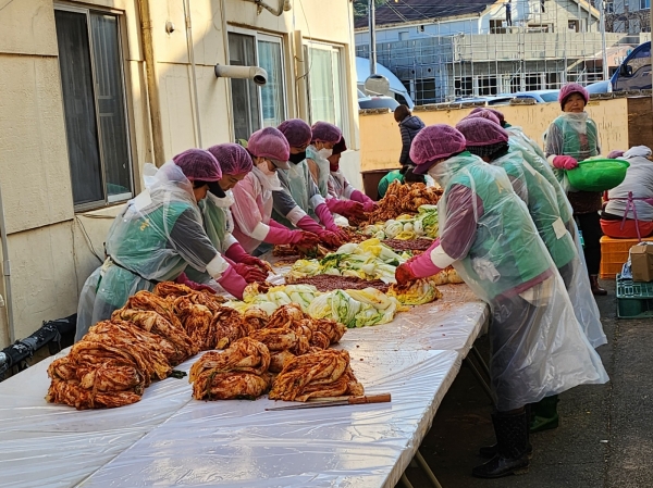 [금요저널] 상동면새마을부녀회는 지난 28일 행정복지센터 뒷마당에서 어려운 이웃들이 따뜻한 겨울을 날 수 있도록 2023년 사랑의 김장나눔 행사를 개최했다.