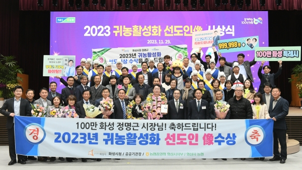 [금요저널] 정명근 화성시장이 29일 농협중앙회 중앙본부에서 2023년 ‘귀농활성화 선도인상’을 수상했다.