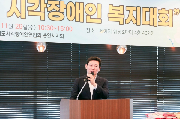[금요저널] 이상일 용인특례시장은 29일 처인구 유림동 페이지 웨딩&파티홀에서 열린 ‘용인시 시각장애인 복지대회’에 참석해 시각장애인과 봉사자들을 격려했다.