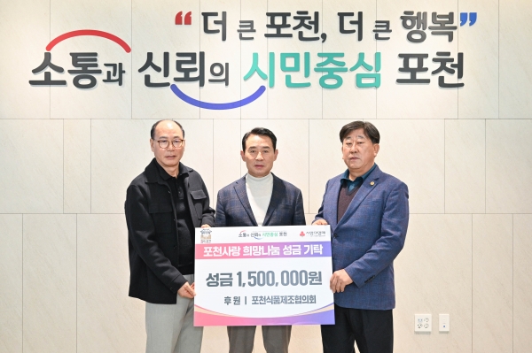 [금요저널] 포천시는 포천식품제조협의회가 지난 29일 이웃돕기 성금 150만원을 사랑의열매 공동모금회를 통해 기탁했다고 밝혔다.