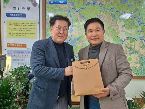 김승열 율면고등학교 교장선생님과 김세종 율면장은 “학생들이 이번 기탁을 통해 타인을 배려하는 마음과 나눔을 실천하는 청소년으로 커가기를 바라며 기탁물품은 율면 취약계층 어르신들에게 그 뜻과 함께 소중히 전달하겠다”고 감사의 마음을 전했다.