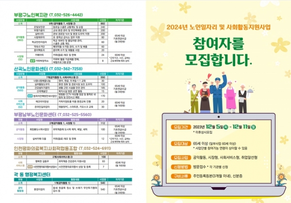부평구, 2024년 노인일자리 및 사회활동지원사업 참여자 모집