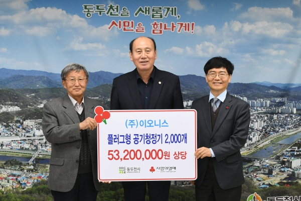 [금요저널] 지난 28일 동두천시는 ㈜이오니스로부터 5,320만원 상당의 플러그형 공기청정기 2,000개를 이웃 돕기 성품으로 전달받았다고 전했다.