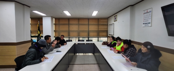 이날 회의에서는 폐지를 주워 생활하고 있는 노인 부부 가구 중 배우자의 신경마비 증상으로 긴급구호비가 필요한 가구를 내용으로 회의를 진행했다.