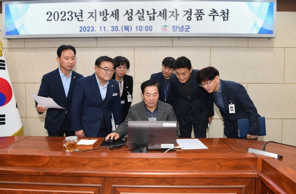 [금요저널] 창녕군은 30일 군청 군정회의실에서 건전한 지방세 납세풍토 확립과 성실납세자가 우대받는 분위기 조성을 위해 지방세 성실납세자 경품 추첨 행사를 진행했다.