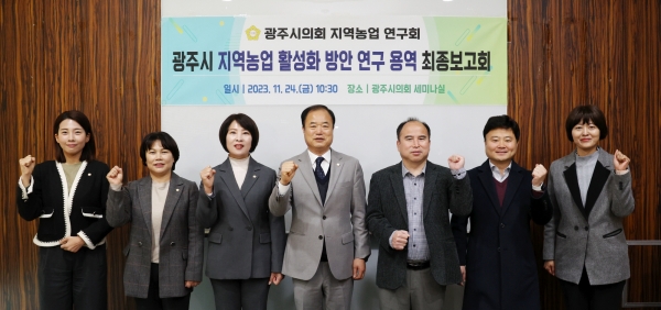 [금요저널] 광주시의회 의원연구단체인 ‘지역농업 연구회’는 지난 24일 시의회 3층 세미나실에서 연구단체 소속 의원과 관계 공무원, 용역사 관계자 등 10여명이 참석한 가운데 ‘지역농업 활성화 방안 연구 용역’의 최종보고회를 개최했다.