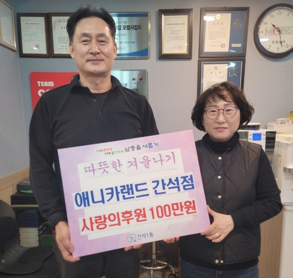 [금요저널] 인천 남동구 간석1동 행정복지센터는 최근 애니카랜드 간석점으로부터 취약계층 아동 지원을 위한 성금 100만원을 전달받았다고 1일 밝혔다.