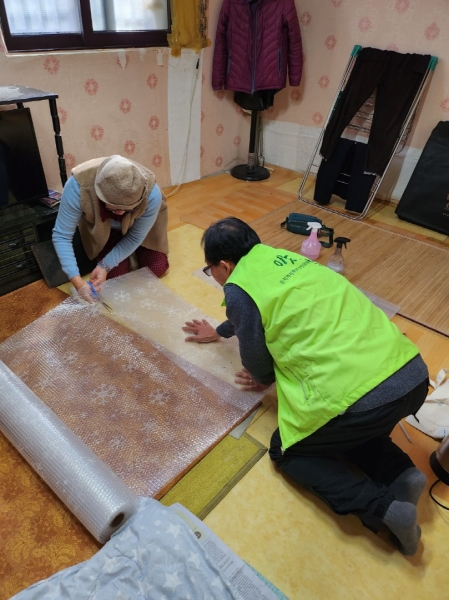 특히 동절기 난방 취약계층 10가구에 바람이 새는 곳에 문풍지, 방한용 에어캡을 창문과 대문 등에 부착해 드리면서 안부를 확인하고 복지 욕구를 조사해 동 행정복지센터에 전달하는 사업으로 지난달 16일부터 2가구씩 5회차로 계획해 현재 3회차까지 진행됐다.