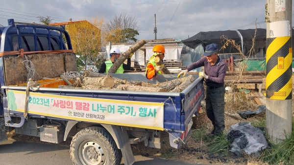 군은 동절기에 어려운 이웃이 따뜻한 겨울을 날 수 있도록 독거노인, 기초생활수급자 및 장애인 가구 등 51세대에 각각 1㎥씩 난방용 땔감을 지원했다.