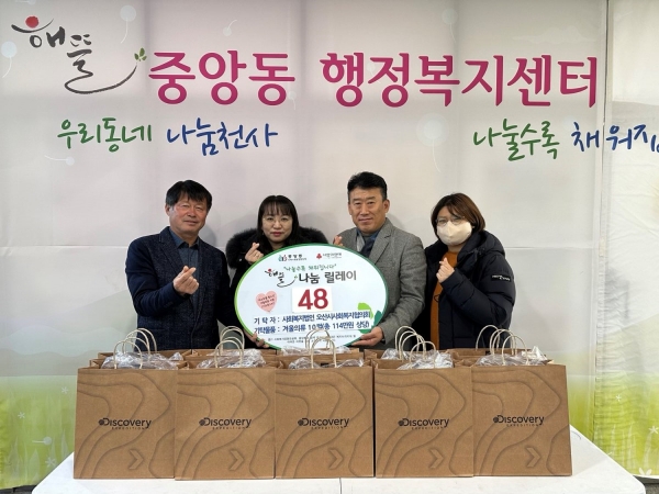 [금요저널] 오산시 중앙동는 지난 30일 사회복지법인 오산시사회복지협의회가 48번째 해뜰 나눔 릴레이에 참여하며 총 114만원 상당의 겨울의류 기모후드티 10벌을 기탁했다고 전했다.