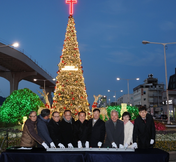 지난달 30일 양산시기독교총연합회의 주관으로 진행한 점등식 행사에서 트리 점등과 함께 희망의 성탄메시지도 전했다.
