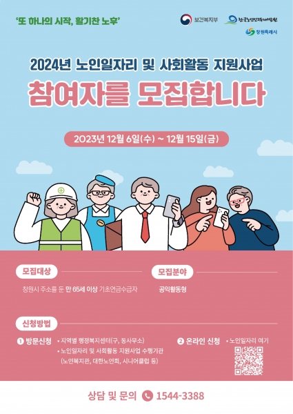 창원시, 2024년 노인일자리 및 사회활동지원사업 참여자 모집