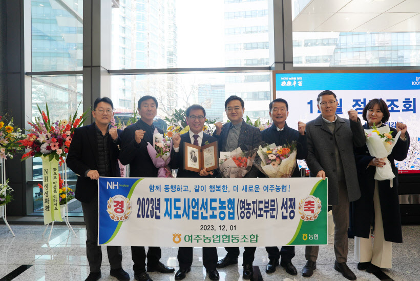 여주농협(조합장·이병길)이 1일 '2023년 지도사업 선도농협상'을 수상했다. 더불어 여주농협은 농협중앙회로부터 무이자자금 20억원과 함께 4급 특별승진 1명 자격을 부여받았다.