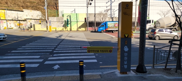 이번에 설치한 횡단보도 차단기는 지난 5월 발생한 횡단보도를 건너 등교하던 초등학생의 교통사고 보완 조치이다.