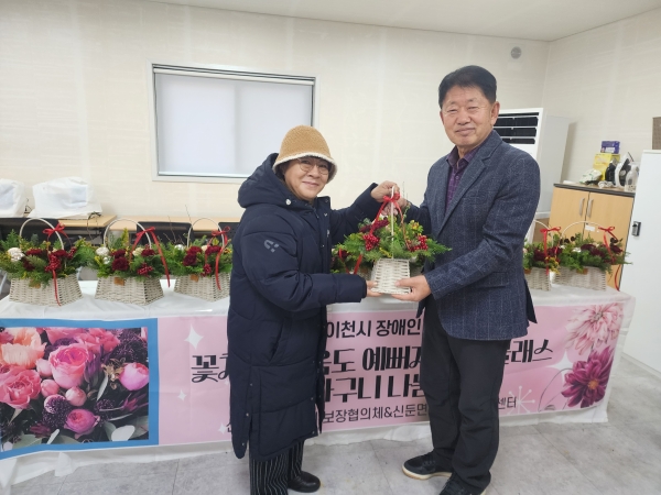 [금요저널] 이천시 신둔면행정복지센터는 1일 신둔면사회보장협의체와 함께 이천시 장애인 평생학습 프로그램 “꽃처럼 마음도 예뻐지는 꽃 클래스” 학습자들의 꽃바구니 나눔 행사를 가졌다.
