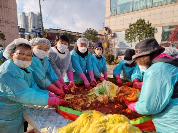 이날 담근 김치는 청천1동과 청천2동 행정복지센터에 750상자, 경로당에 125상자에 나눠 전달했다.
