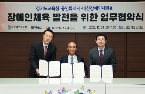 업무협약식에는 이상일 용인특례시장, 임태희 경기도교육감, 정진완 대한장애인체육회장 등이 참석했다.