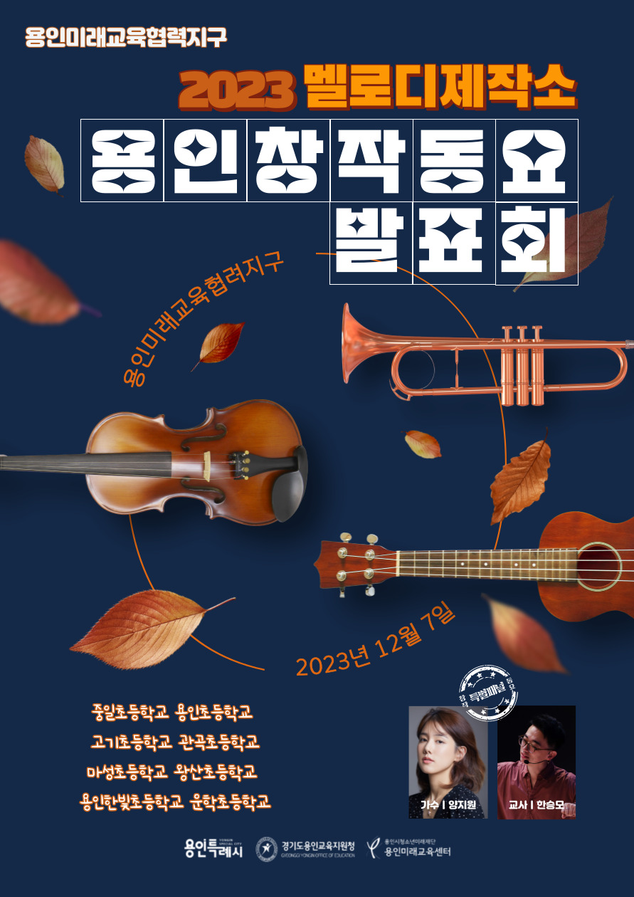11월 21일에 사전녹화를 마친 ‘2023 용인창작동요발표회’는 용인특례시·용인미래교육센터·용인교육지원청이 함께하는 ‘용인 미래교육 협력지구’ 프로그램 음악메이커교육 멜로디제작소 ‘우리가 만드는 창작동요’에서 시작되었다.